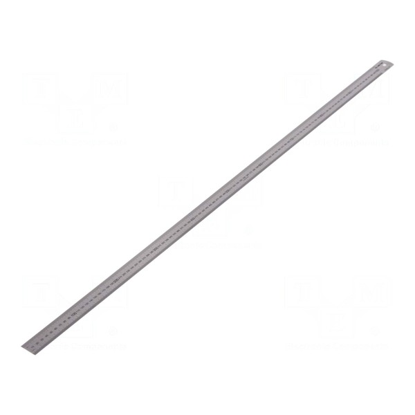 Przymiar o długości 1 m wykonany ze stali nierdzewnej. Narzędzie zostało wyposażone w czytelną skalę odczytu, która umożliwia dokonywanie pomiarów w jednostkach metrycznych oraz calowych.