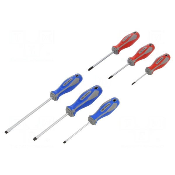 Wkrętak uniwersalny zestaw 6szt., groty Phillips, płaski