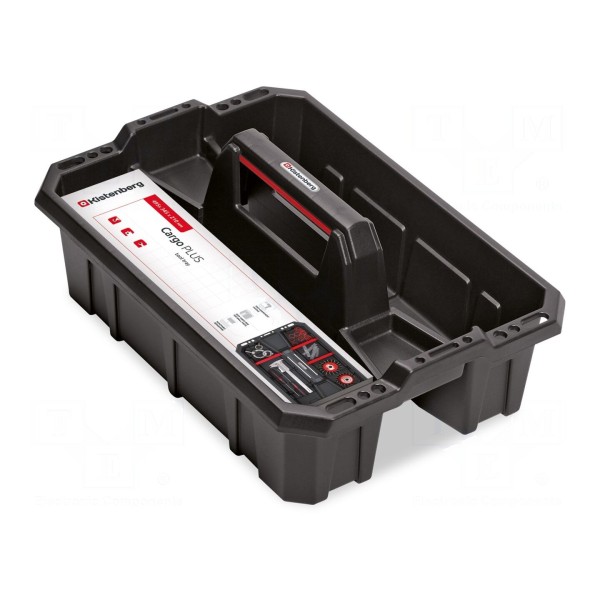 Konstrukcja skrzynki wyposażona jest w ergonomiczny uchwyt ułatwiający przenoszenie oraz sześć wyjmowanych przegród umożliwiających organizację przestrzeni wewnątrz pojemnika.