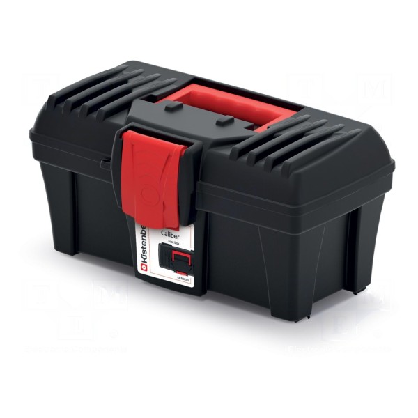 Skrzynka narzędziowa CALIBER 30 została wykonana z tworzywa sztucznego na bazie polimeru. Konstrukcja zapewnia udźwig do 6kg, co pozwala na transport podręcznych zestawów narzędzi.