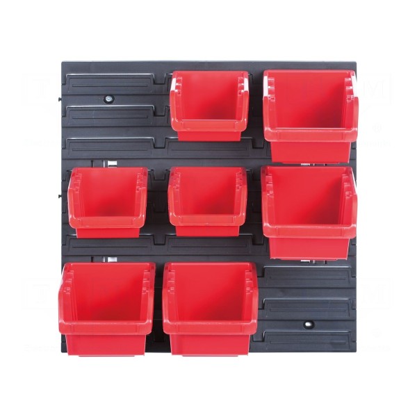 W zestawie: kuweta KTR16 x3, kuweta KTR20 x4, tablica. Zestaw zawiera wszystkie elementy niezbędne do montażu systemu przechowywania na stanowisku roboczym.