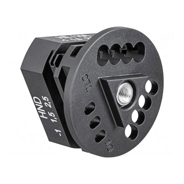 Element ten przeznaczony jest do wykorzystania w procesie obróbki złączy solarnych typu HARTING oraz HTS w obszarze fotowoltaiki. Pozwala na precyzyjne ustawienie pozycji w narzędziu, zapewniając zgodność z wymaganiami technicznymi dedykowanych złączy.