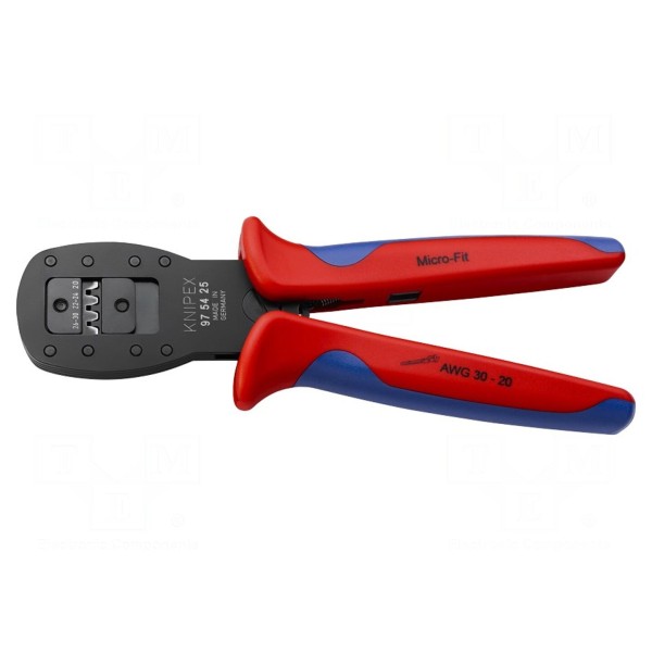 Narzędzie do zaciskania przeznaczone jest do obsługi terminali typu Micro-Fit. Obsługuje przewody w zakresie od 30AWG do 26AWG, umożliwiając wykonywanie prac przy połączeniach elektrycznych tego standardu.
