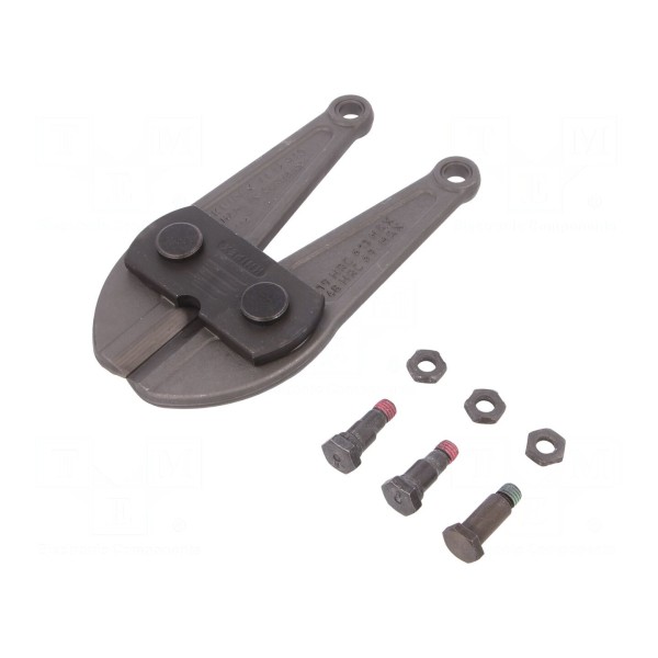 Część zamienna KNIPEX w postaci kompletnego ostrza ze śrubami, przeznaczona do szczypiec do cięcia KNP.7172910 o długości 910 mm.