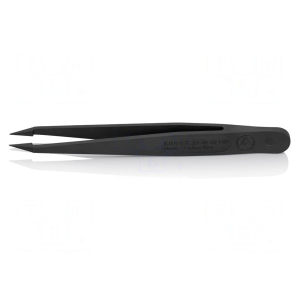 Pęseta o konstrukcji prostej, przeznaczona do prac wymagających ochrony przed wyładowaniami elektrostatycznymi w wersji ESD. Narzędzie wyposażone jest w ostre, wąskie końcówki, co umożliwia precyzyjne chwytanie drobnych elementów.