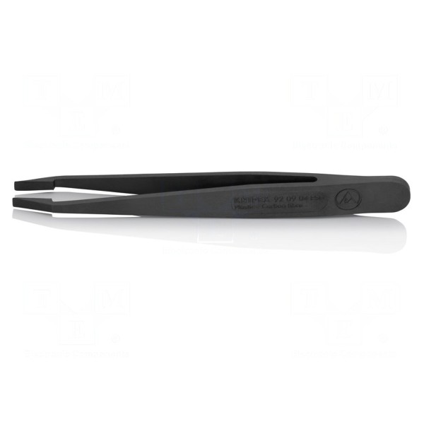 Pęseta o długości 115 mm została wykonana w wersji ESD, co pozwala na bezpieczną pracę z elementami wrażliwymi na wyładowania elektrostatyczne. Narzędzie posiada prostą konstrukcję oraz końcówki wykonane z włókna węglowego.