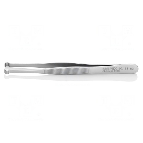 Pęseta KNIPEX 921103 jest narzędziem przeznaczonym do wykonywania prac precyzyjnych. Konstrukcja charakteryzuje się zagiętym kształtem końcówki, co umożliwia dostęp do trudno dostępnych miejsc podczas wykonywania drobnych czynności montażowych lub serwisowych.