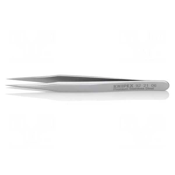 Pęseta o długości 80mm została wykonana ze stali nierdzewnej. Narzędzie charakteryzuje się prostą budową oraz ostrym kształtem końcówki.