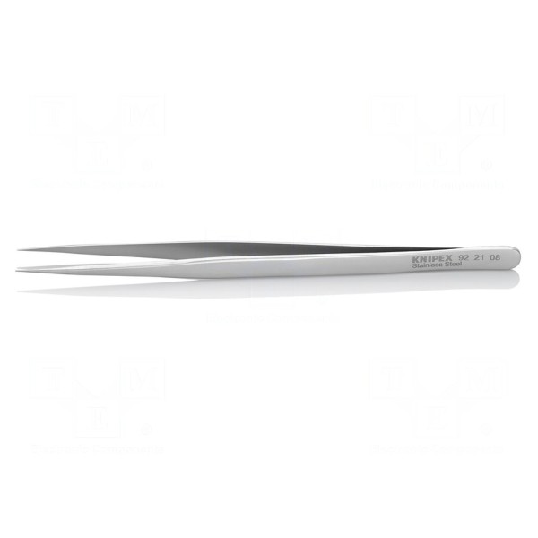 Pęseta o długości 140 mm została wykonana ze stali nierdzewnej. Model charakteryzuje się prostą konstrukcją oraz ostrym kształtem końcówki ostrza, co umożliwia chwytanie drobnych elementów.