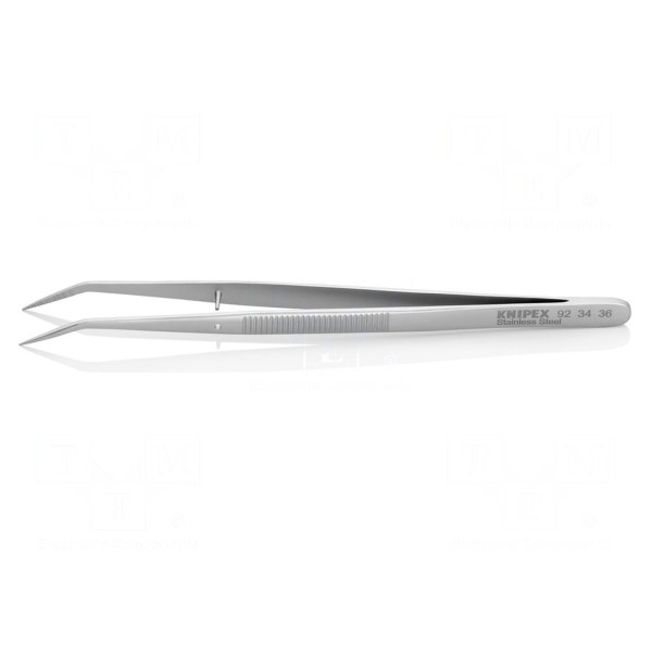 Pęseta KNIPEX 923436 to narzędzie o długości 150 mm, przeznaczone do zastosowań uniwersalnych. Konstrukcja charakteryzuje się zagiętym kształtem ostrzy oraz ostrym wykończeniem końcówek, co pozwala na precyzyjną pracę w różnych warunkach.