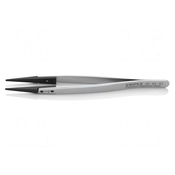 Pęseta Knipex 928101 to narzędzie o konstrukcji prostej, przeznaczone do precyzyjnych prac wymagających ochrony przed wyładowaniami elektrostatycznymi. Wersja ESD zapewnia bezpieczną obsługę podzespołów wrażliwych na ładunki elektryczne.