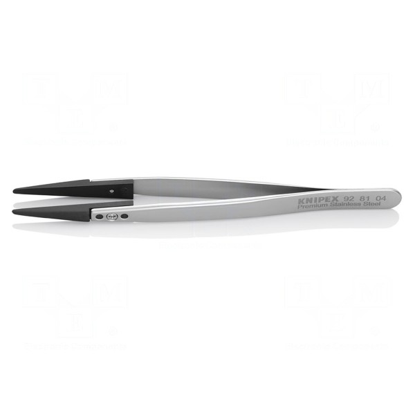 Pęseta Knipex 928104 to narzędzie o prostej konstrukcji, zaprojektowane do prac precyzyjnych. Model ten został wykonany w wersji ESD, co pozwala na bezpieczną pracę z komponentami elektronicznymi wrażliwymi na wyładowania elektrostatyczne.
