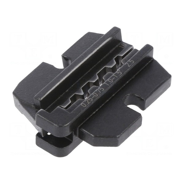 Szczęki do zaciskania przeznaczone są do obróbki końcówek izolowanych. Element pozwala na pracę z przewodami o przekroju od 0,75mm² do 2,5mm².