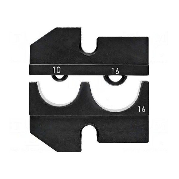 Szczęki do zaciskania KNIPEX 974916 przeznaczone są do obróbki końcówek izolowanych. Element obsługuje przewody o przekroju od 10mm² do 16mm².
