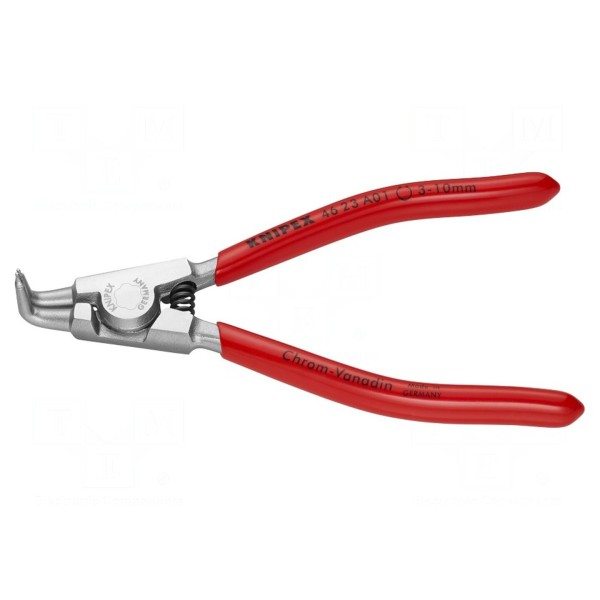 Szczypce przeznaczone do obsługi pierścieni osadczych zewnętrznych o średnicy od 3 mm do 10 mm. Konstrukcja narzędzia w wersji kątowej zapewnia dostęp do pierścieni w miejscach o ograniczonej przestrzeni roboczej.