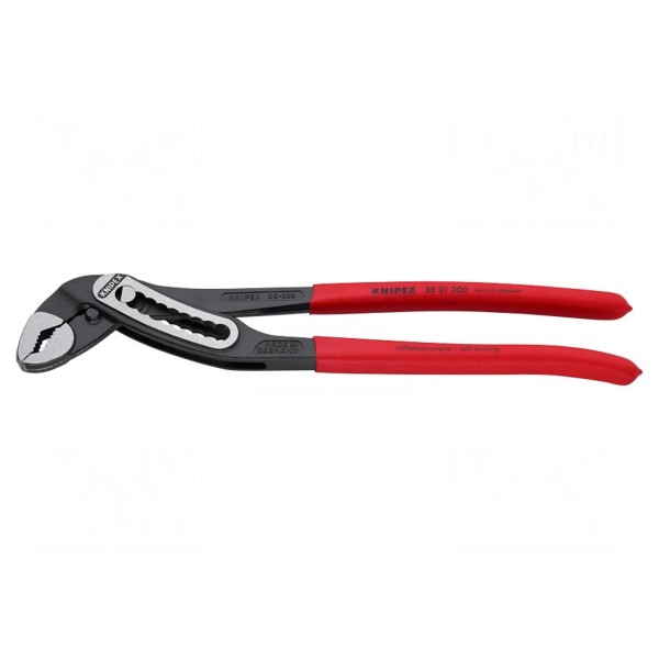 Szczypce nastawne przeznaczone są do chwytania rur oraz elementów o różnych przekrojach. Narzędzie posiada długość 300 mm, co ułatwia pracę z większymi obiektami.