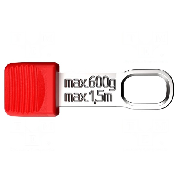 Uchwyt przeznaczony jest do zabezpieczania szczypiec podczas pracy na wysokości. Element posiada maksymalny udźwig wynoszący 600g i występuje w kolorze czerwonym.