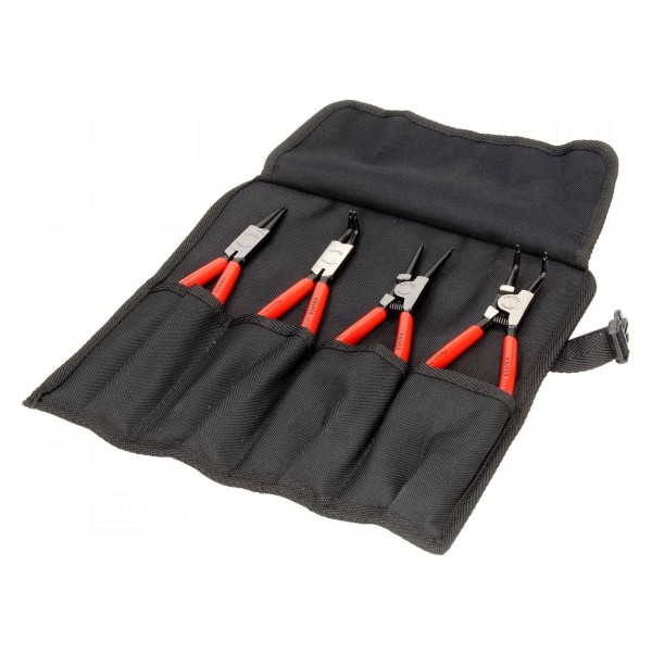 W zestawie znajdują się: KNP.4411J2 (szczypce proste do pierścieni wewnętrznych), KNP.4421J21 (szczypce zagięte 90° do pierścieni wewnętrznych), KNP.4611A2 (szczypce proste do pierścieni zewnętrznych ze sprężyną rozwierającą) oraz KNP.4621A21 (szczypce zagięte 90° do pierścieni zewnętrznych ze sprężyną rozwierającą). Całość kompletu dostarczana jest w poręcznym etui, które ułatwia przechowywanie i organizację narzędzi.