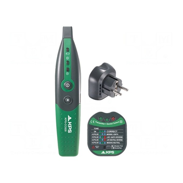 Tester gniazd sieciowych KPS CC820 służy do sprawdzania instalacji elektrycznych pod napięciem 230V AC. Urządzenie zostało zaprojektowane do pracy z wtyczkami w standardzie europejskim.