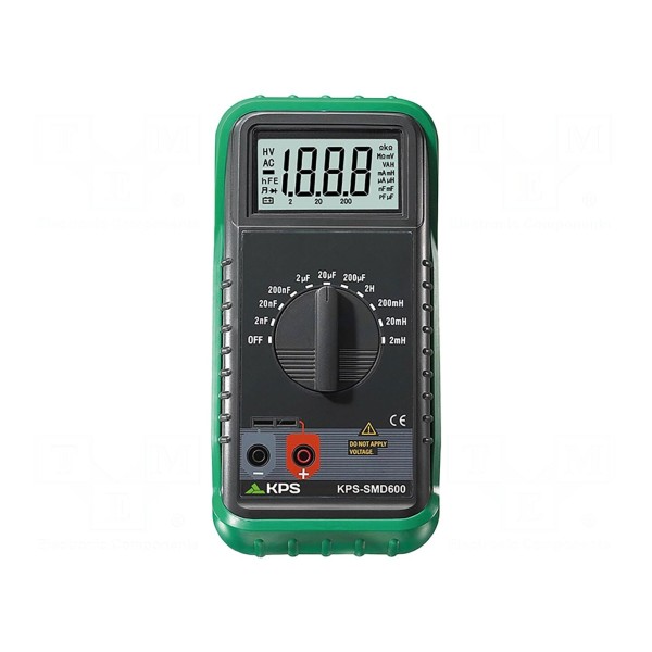 Tester KPS SMD600 przeznaczony jest do testowania komponentów elektronicznych typu SMD. Przyrząd umożliwia pomiar indukcyjności w zakresach 2mH, 20mH, 200mH oraz 2H, a także pomiar pojemności w zakresach 2nF, 20nF, 200nF, 2µF, 20µF oraz 200µF.
