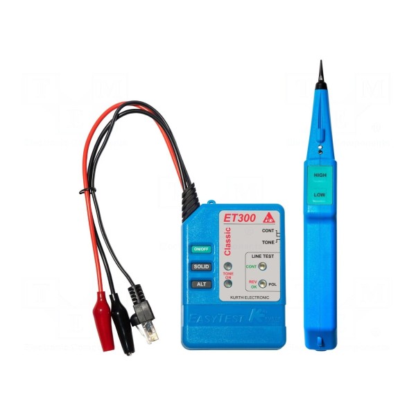 Interfejs urządzenia składa się z gniazda słuchawkowego, złączy RJ11 oraz zacisków krokodylkowych. Wymiary nadajnika wynoszą 68x96x25mm, natomiast odbiornik posiada wymiary 220x40x25mm. Przewód o długości 0,25m pozwala na wygodne podłączenie do testowanych układów. W zestawie: nadajnik, odbiornik, pokrowiec.