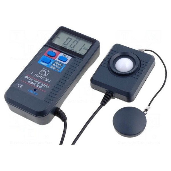 Luksomierz KYORITSU KEW5202 umożliwia pomiar natężenia oświetlenia w zakresach 200 lx, 2000 lx oraz 20 klx z rozdzielczością 0,1 lx. Urządzenie wyposażone jest w zewnętrzną przystawkę pomiarową z fotodiodą krzemową, połączoną z jednostką główną za pomocą przewodu o długości 1,5 m. Próbkowanie pomiarów odbywa się z częstotliwością 2,5 razy na sekundę, a wyniki prezentowane są na wyświetlaczu LCD o pojemności 3,5 cyfry (maksymalne wskazanie 1999).