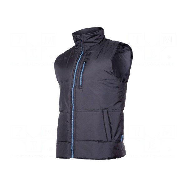 Bezrękawnik LAHTI PRO wykonany jest z poliestru o gramaturze 160g/m². Produkt dostępny jest w wersji ocieplanej, bez kaptura, w kolorystyce czarno-niebieskiej. Odzież posiada rozmiar XXL i jest zgodna z normą CE.
