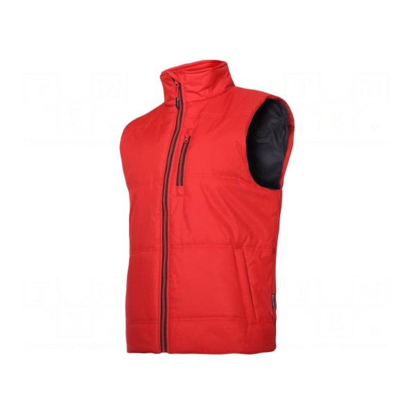 Bezrękawnik LAHTI PRO L4131502 wykonany jest z poliestru i charakteryzuje się ocieplaną konstrukcją, która nie posiada kaptura. Produkt utrzymany jest w czerwono-czarnej kolorystyce i jest dostępny w rozmiarze M.