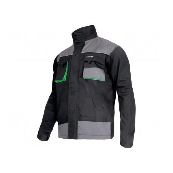 Odzież wyposażona jest w siedem kieszeni zwiększających funkcjonalność podczas użytkowania. Produkt spełnia wymagania normy CE.