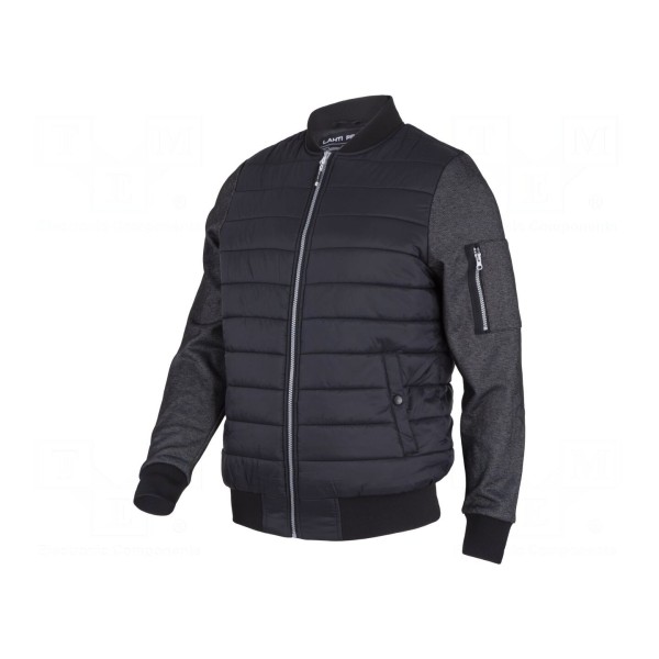 Odzież w kolorze czarnym posiada cztery kieszenie przeznaczone do przechowywania niezbędnych przedmiotów. Produkt jest zgodny z wymaganiami normy CE. Rozmiar bluzy to XL.