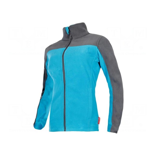 Bluza polarowa damska wykonana z materiału polar poliester o gramaturze 290g/m². Produkt dostępny jest w kolorystyce turkusowo-szarej w rozmiarze XXXL.
