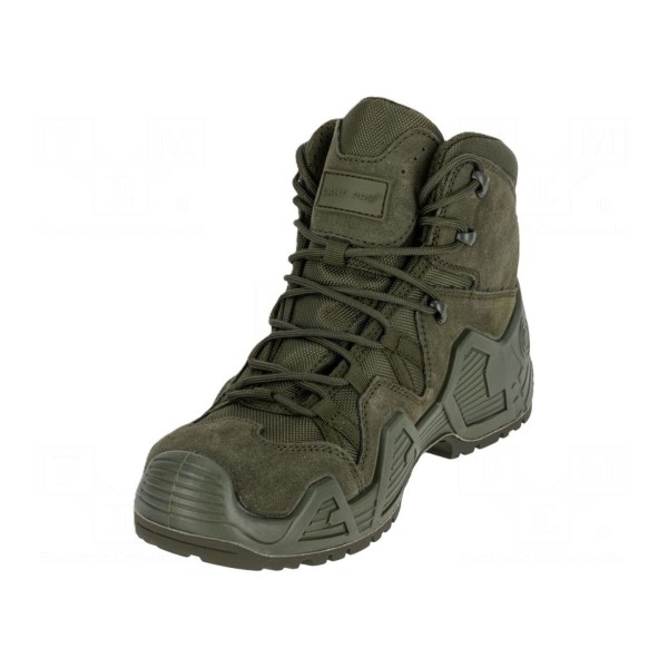 Trzewiki ochronne wykonane z połączenia tkaniny oraz zamszu. Model dostępny jest w rozmiarze 39 i charakteryzuje się ciemnozieloną kolorystyką.