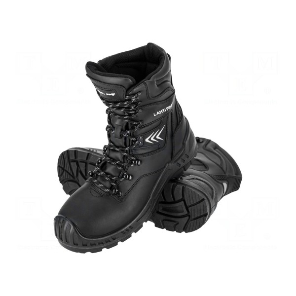 Prezentowane trzewiki ochronne wykonane są ze skóry w kolorze czarnym. Model w wersji wysokiej charakteryzuje się konstrukcją bez podnoska, co przekłada się na mniejszą wagę obuwia podczas długotrwałego noszenia.