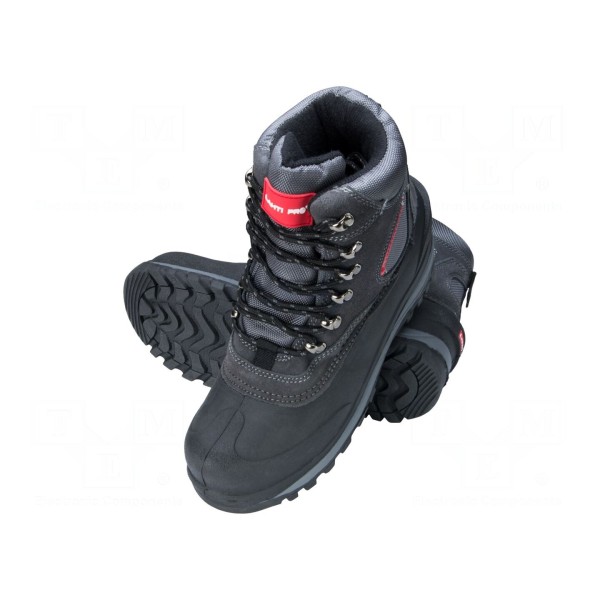 Buty utrzymane są w szaro-czerwonej kolorystyce. Produkt stanowi element odzieży ochronnej, zaprojektowany z myślą o zapewnieniu odpowiednich warunków termicznych użytkownikowi w wymagającym środowisku pracy.