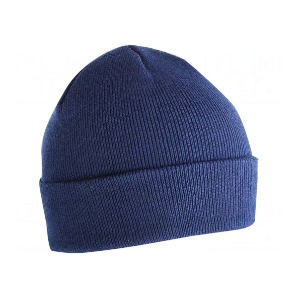 Czapka BHP wykonana z akrylu w kolorze granatowym. Model charakteryzuje się konstrukcją dwuwarstwową oraz ocieplanym wnętrzem, co pozwala na stosowanie w warunkach wymagających dodatkowej ochrony termicznej.