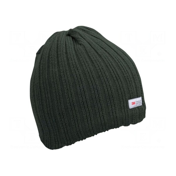 Czapka ocieplana w kolorze zielonym została wykonana z połączenia akrylu oraz materiału izolacyjnego THINSULATE™. Model ten przeznaczony jest dla użytkowników o obwodzie głowy w przedziale rozmiarowym 57–61.