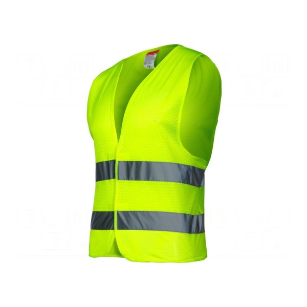 Kamizelka odblaskowa LAHTI PRO w rozmiarze L została wykonana z poliestru o gramaturze 120g/m². Element charakteryzuje się siatkową konstrukcją oraz żółtą kolorystyką, zapewniając odpowiednią widoczność w warunkach ostrzegawczych.