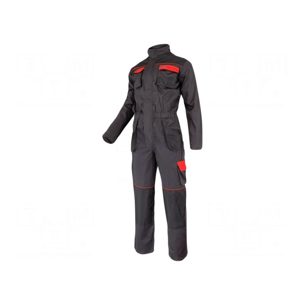 Konstrukcja elementu wyposażona została w 11 kieszeni, co zwiększa funkcjonalność podczas codziennego użytkowania. Kombinezon posiada oznaczenie zgodności z normą CE.
