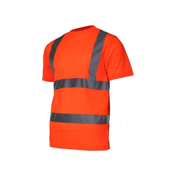 Koszulka T-shirt marki LAHTI PRO w wersji ostrzegawczej wykonana jest z poliestru o gramaturze 140g/m². Produkt dostępny jest w rozmiarze XXL oraz pomarańczowej kolorystyce, co wpływa na widoczność użytkownika w różnych warunkach pracy.