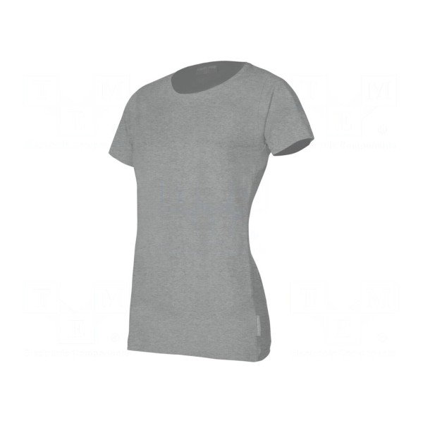 Koszulka T-shirt w wersji damskiej wykonana została z bawełny o gramaturze 180g/m². Produkt charakteryzuje się szarym kolorem oraz dopasowaniem do rozmiaru S.