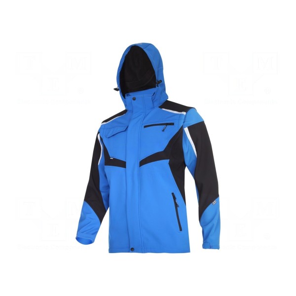 Kurtka soft-shell LAHTI PRO wykonana jest z połączenia poliestru i elastanu o gramaturze 310g/m². Produkt występuje w rozmiarze S w kolorystyce niebiesko-czarnej i posiada certyfikat CE.