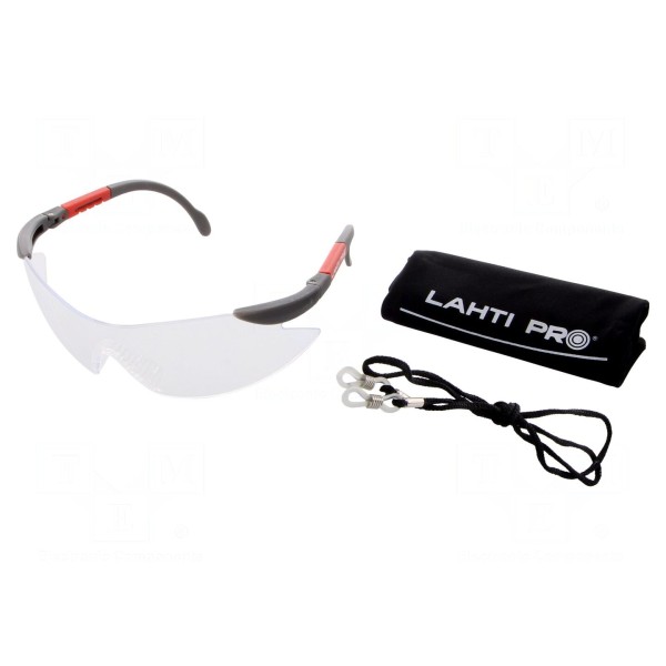 Okulary ochronne marki LAHTI PRO przeznaczone są do ochrony oczu przed cząstkami stałymi. Zastosowano w nich przezroczyste soczewki o klasie ochronności F. Konstrukcja modelu posiada właściwości regulowane, co pozwala na dopasowanie do indywidualnych potrzeb użytkownika.