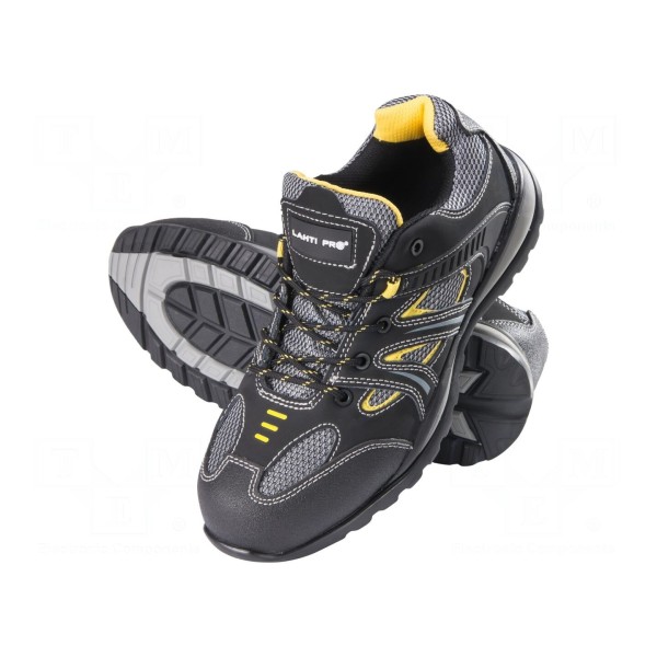 Półbuty BHP LAHTI PRO w rozmiarze 42 wykonane zostały z dzianiny oraz nubuku. Model ten charakteryzuje się czarno-żółtą kolorystyką i jest wyposażony w podnosek kompozytowy.