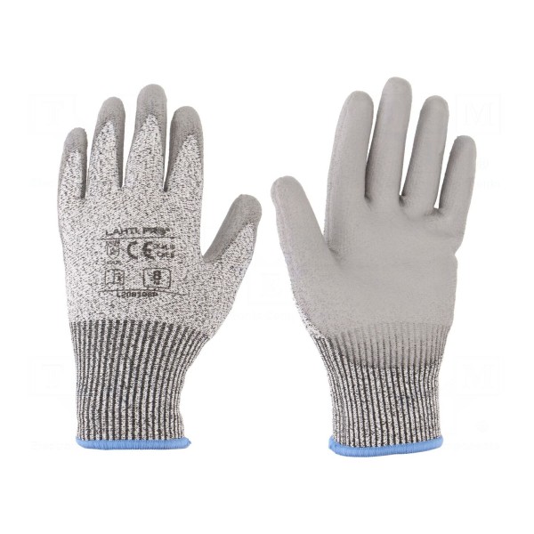 Rękawice ochronne LAHTI PRO wykonane zostały z włókna kompozytowego w kolorze szarym. Produkt dostępny jest w rozmiarze 8.