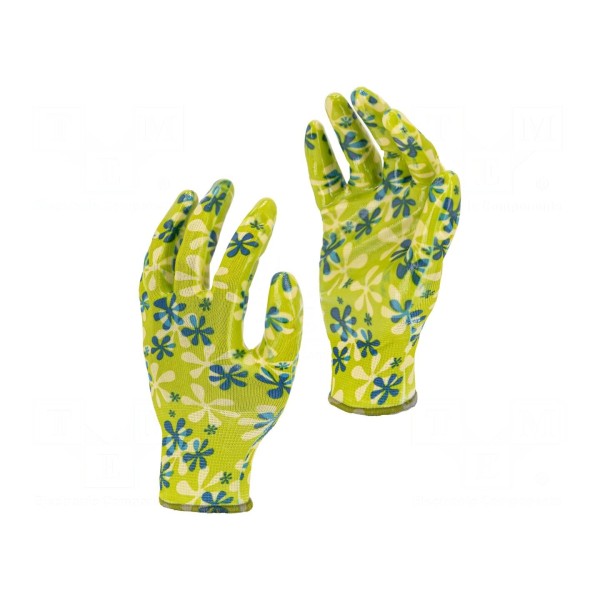 Rękawice ochronne LAHTI PRO w rozmiarze 8 zostały wykonane z połączenia nitrylu oraz poliestru. Produkt w kolorze zielonym przeznaczony jest dla użytkowników poszukujących odzieży ochronnej w wersji damskiej.