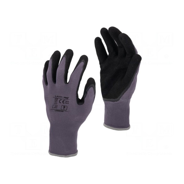 Rękawice ochronne LAHTI PRO w rozmiarze 10 zostały wyprodukowane z połączenia nitrylu, poliamidu oraz poliestru. Konstrukcja zapewnia odpowiednie dopasowanie do dłoni, co przekłada się na komfort użytkowania w różnych warunkach roboczych.