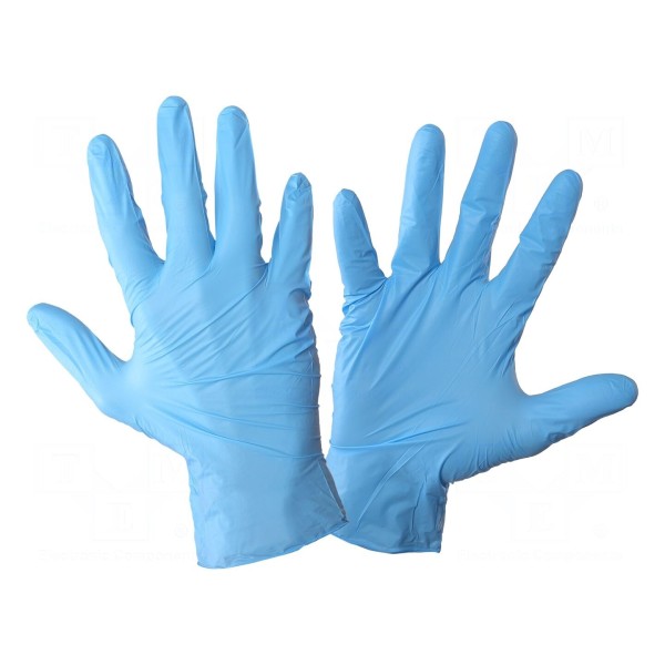 Rękawice ochronne marki LAHTI PRO wykonane zostały z nitrylu w kolorze niebieskim. Produkt dostępny jest w rozmiarze 9, a jedno opakowanie zawiera 100 sztuk rękawic.