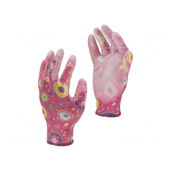 Rękawice ochronne marki LAHTI PRO wykonane zostały z poliestru wykończonego powłoką PU, co zapewnia odpowiednią chwytność podczas pracy. Produkt zaprojektowano w wersji damskiej w kolorze różowym, a dostępny rozmiar to 8.