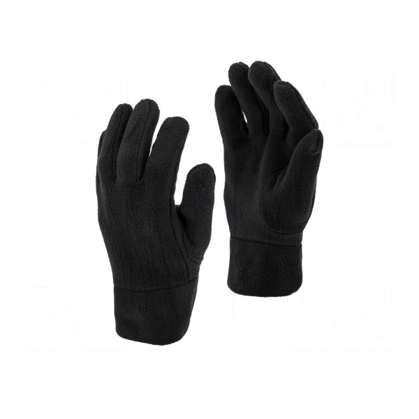 Rękawice ochronne ocieplane wykonane z poliestru w kolorze czarnym. Model przeznaczony jest do ochrony dłoni w warunkach wymagających dodatkowej izolacji termicznej.