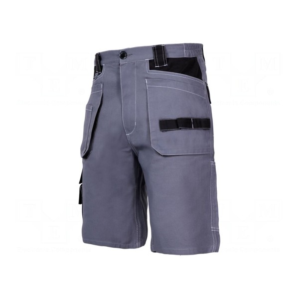 Spodenki ochronne wykonane są z bawełny. Produkt dostępny jest w szaro-czarnej kolorystyce i rozmiarze L.